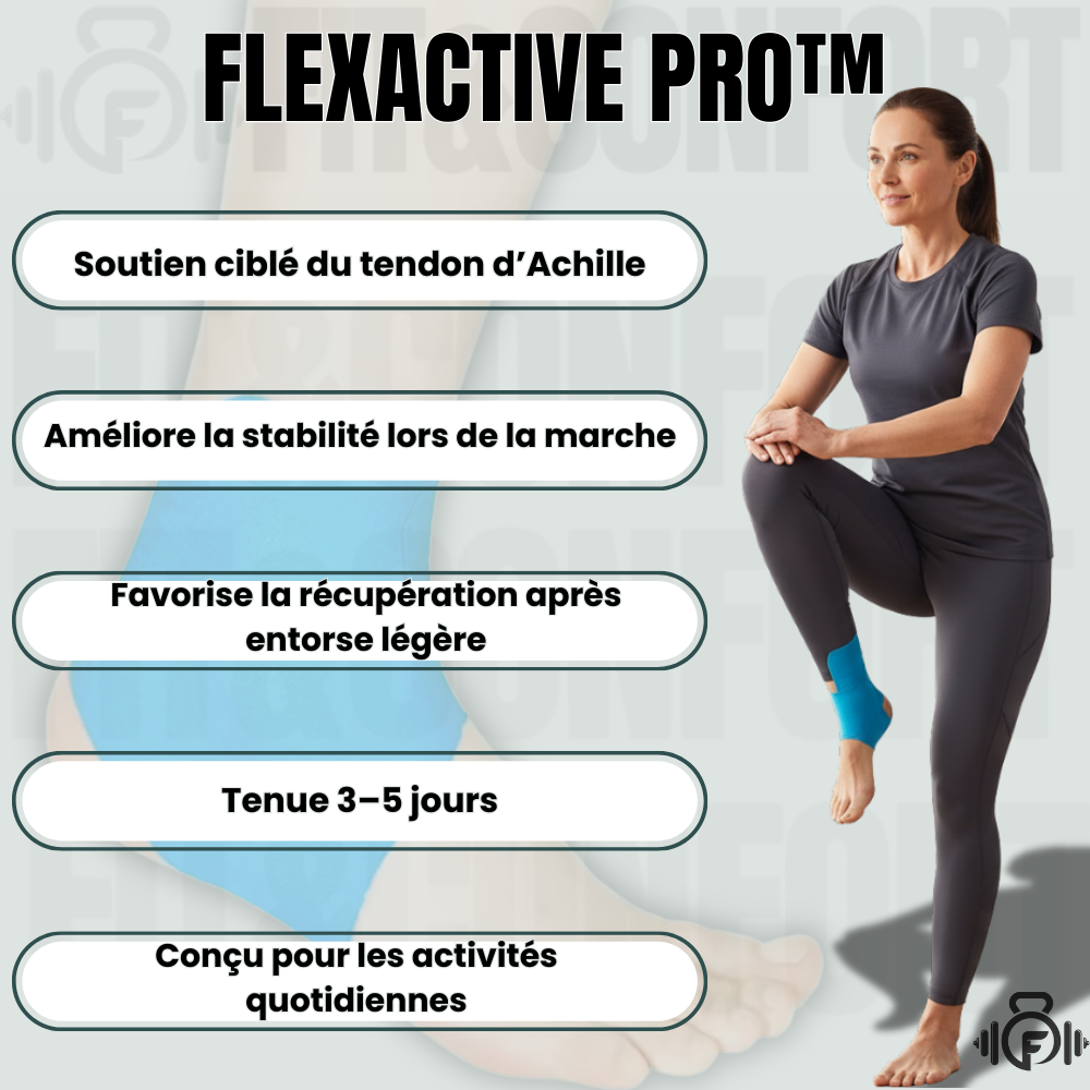 Les bandes kinésiologiques prédécoupées pour la cheville FLEXACTIVE PRO™ offrent un soutien ciblé idéal pour soulager la douleur de cheville, l’entorse légère, le tendon d’Achille ou l’instabilité lors de la marche.